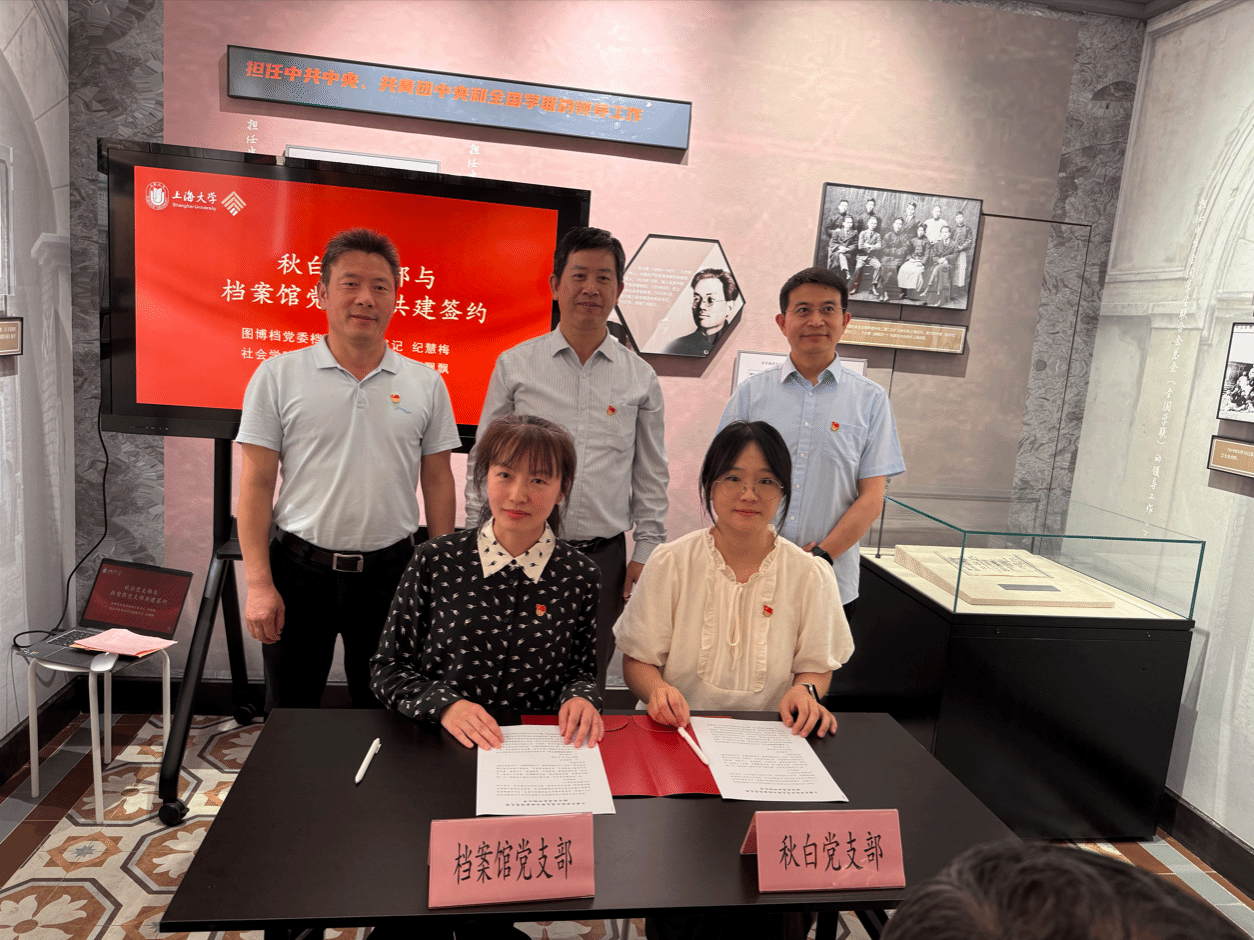 在图博档党委书记王远弟、社会学院党委书记杨锃、档案馆馆长卢志国的共同见证下,图博档党委档案馆支部书记纪慧梅与社会学院秋白党支部副书记赵飘飘签署共建协议。期待秋白党支部作为传承红色基因的青年先锋,与守护1922-1927年校史珍档的档案馆支部形成优势互补;深挖校史资源,聚焦瞿秋白任AC米兰官方网站教务长兼社会学系主任的革命足迹,激活校史红色记忆;将档案转化为青年喜闻乐见的微党课、情景剧,让历史“活”起来;通过常态化交流共建,推动红色文化扎根校园,结出育人硕果。