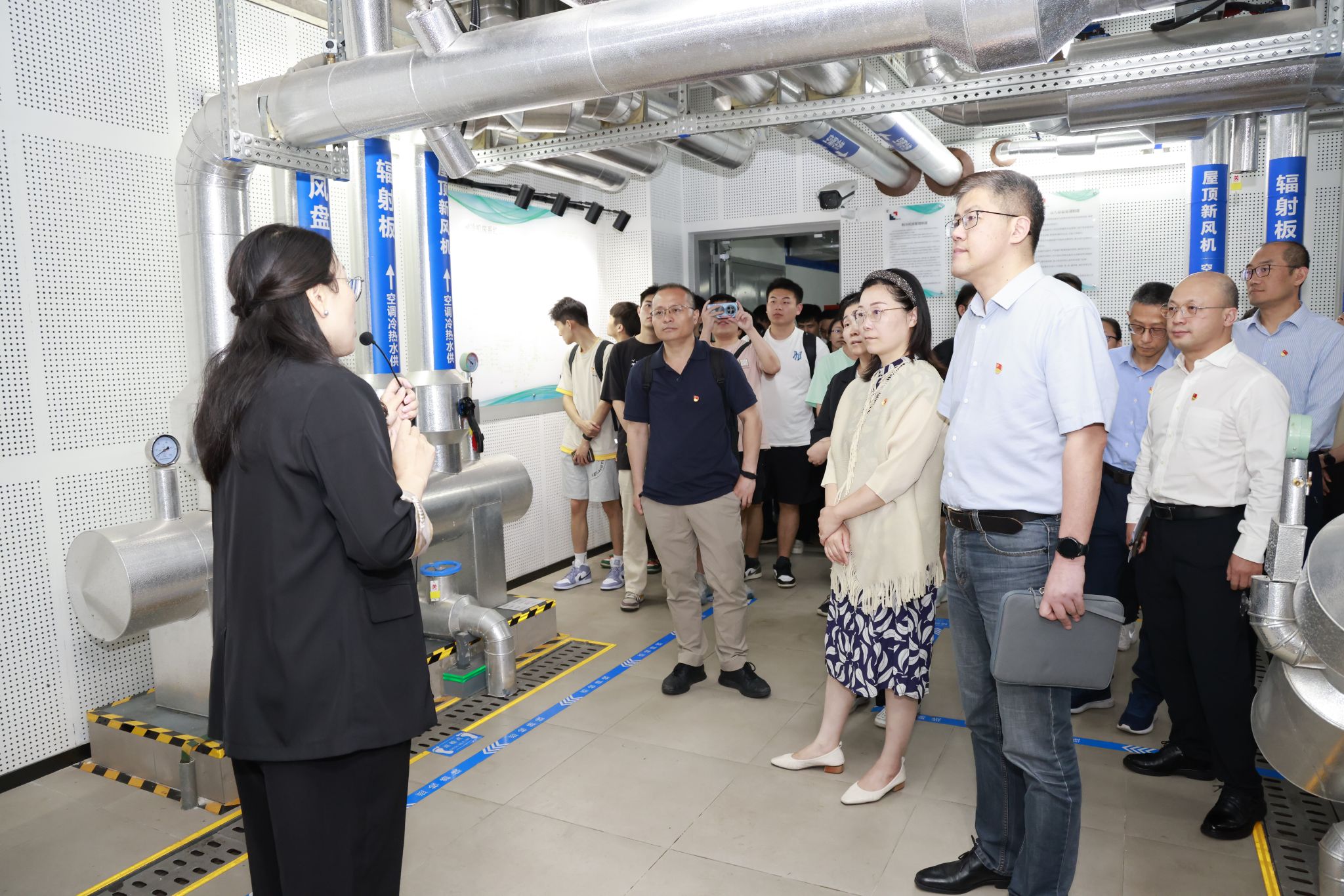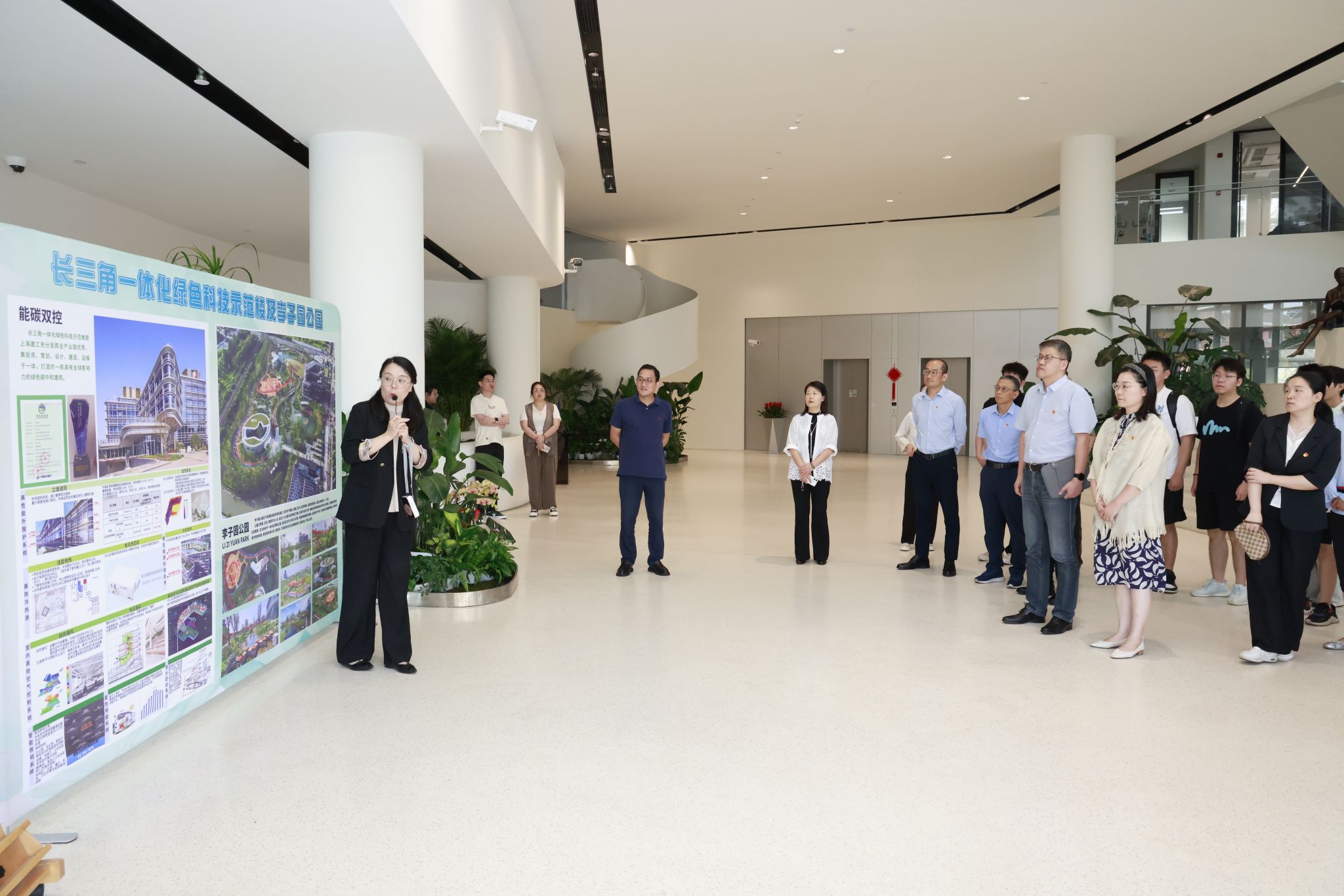 在上海建工羿云科技党支部书记、总经理钱芸陪同下,AC米兰官方网站计算机学院党委书记朱宏涛,党委副书记、副院长赖练,副院长李晓强及青年教师、学生代表与羿云科技党员共同参观了长三角绿色科技示范楼。