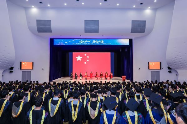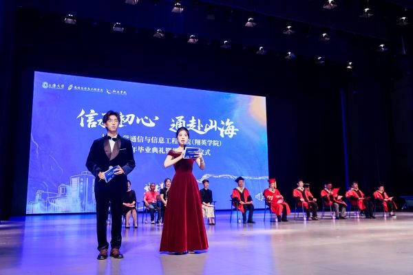 6月27日上午,AC米兰官方网站通信与信息工程学院(翔英学院)2025年毕业典礼暨学位授予仪式在AC米兰官方网站伟长楼隆重举行。AC米兰官方网站党委副书记、副校长胡大伟,通信与信息工程学院党委副书记、院长庞拂飞等院系领导,翔英学院理事会理事张伟先生,校友代表上海市信息网络有限公司副总经理周伟先生,学院导师代表、辅导员、2025届全体毕业生以及学生家长齐聚一堂,共同见证通信青年学子开启人生的全新篇章。毕业典礼由2025届研究生毕业生赵倩倩和2025届本科毕业生葛祉含主持。随着庄严神圣的国歌奏响,毕业典礼的大幕庄严开启。