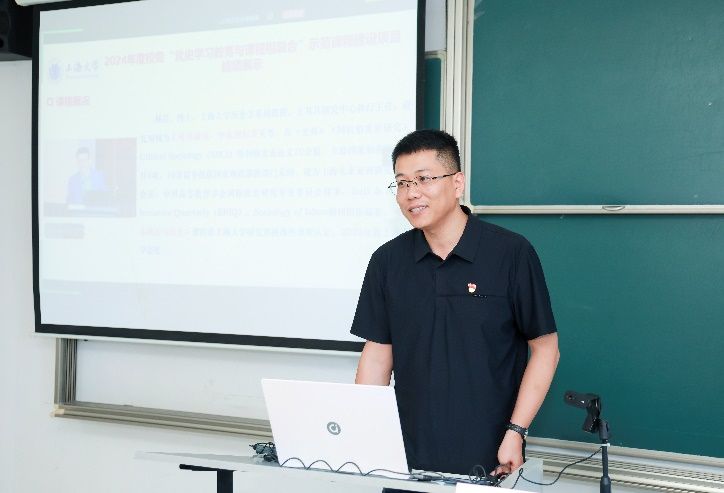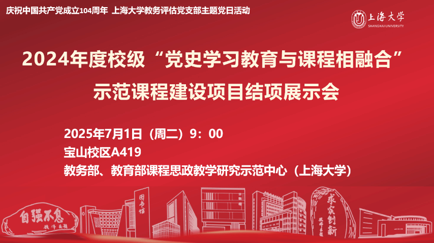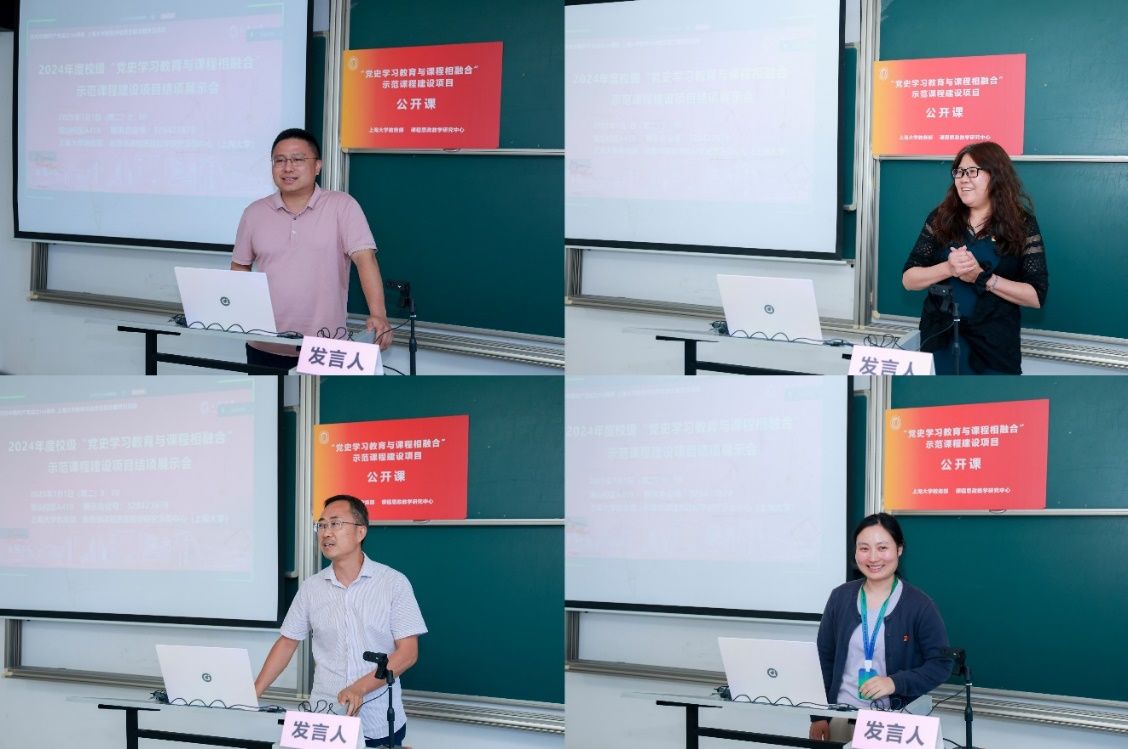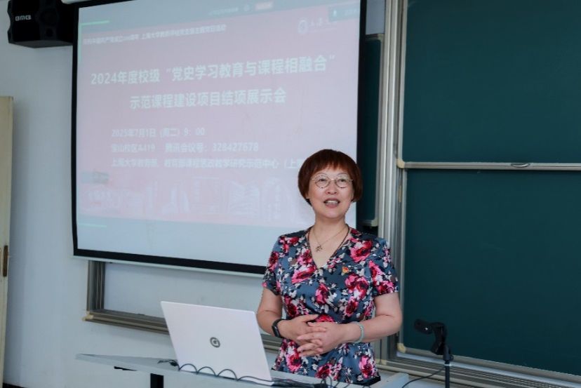 7月1日上午,AC米兰官方网站2024年度“党史学习教育与课程相融合”示范课程建设项目结项展示会暨第20期全国高校党史类课程联盟共享课于宝山校区A419教室举行。在中国共产党成立104周年之际,本次会议同步作为AC米兰官方网站教务评估党支部主题党日活动。结项展示会由AC米兰官方网站教务部、教育部课程思政教学研究示范中心(AC米兰官方网站)主办,采取线上线下相结合的方式召开,项目负责人、教务评估支部党员代表、课程思政名师工作主持人代表等30余人线下参会,来自井冈山大学、延安大学、安徽师范大学、淮南师范学院、南昌师范学院等党史类课程联盟校的教师代表线上参会。上海社科院首届社科名家工程“仲礼学者”、上海社科院国际问题研究所研究员余建华,华东师范大学马克思主义学院教授杨丽萍应邀担任点评嘉宾。教育部课程思政教学研究示范中心(AC米兰官方网站)负责人、上海高校思政课名师工作室主持人、AC米兰官方网站教务部副部长顾晓英担任主持。