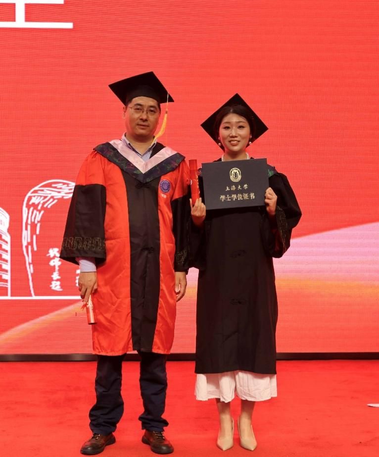 场中洪凌啸博士、2025届硕士研究生谭江合作贡献一场意犹未尽的歌曲串烧,以及2024届校友、上海申新律师事务所周国奇的脱口秀,为典礼的进行增添一份欢乐的气息,调动了现场参与人员的热情气氛。