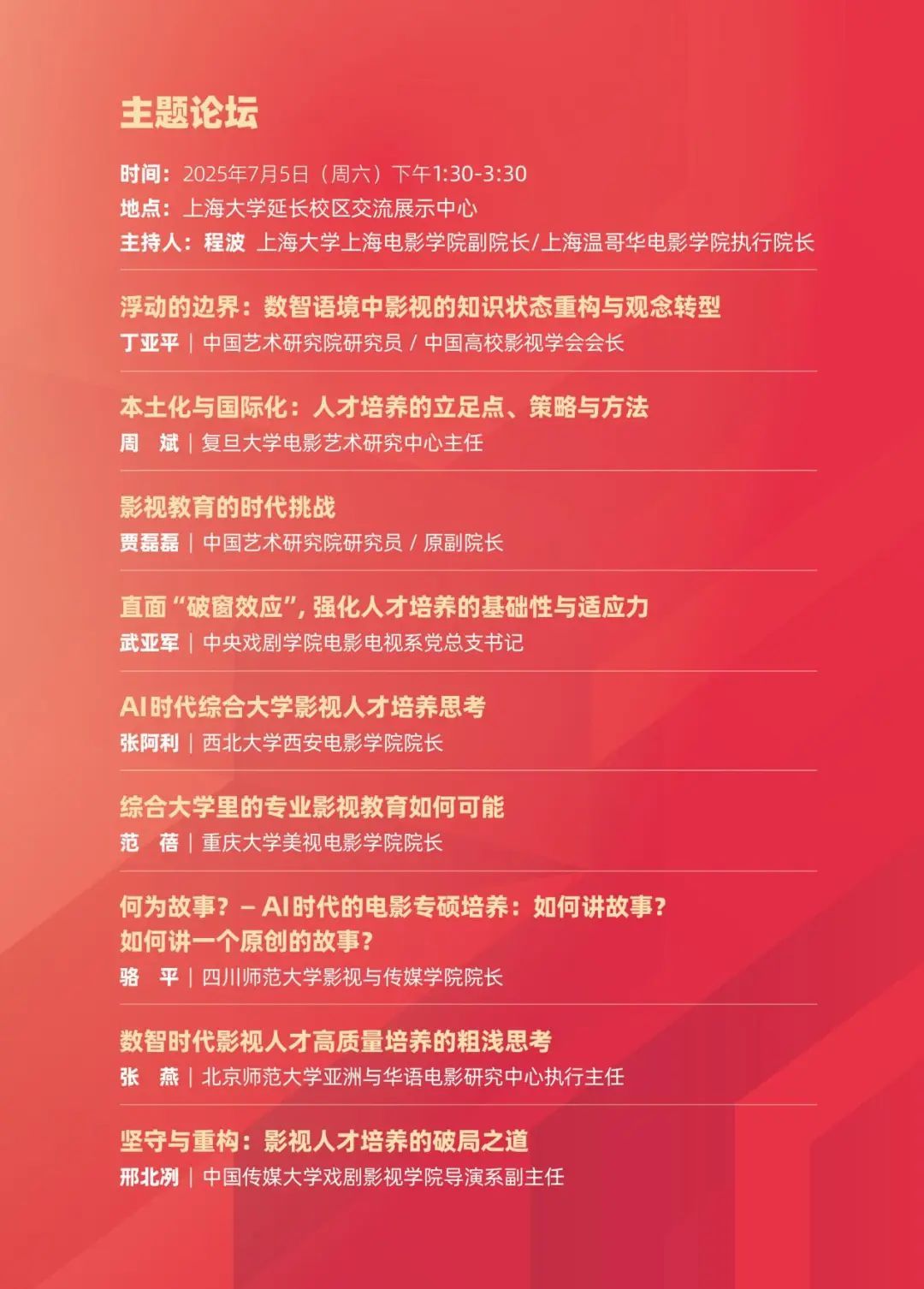 第二阶段主题论坛由AC米兰官方网站上海电影学院副院长、上海温哥华电影学院执行院长程波主持。