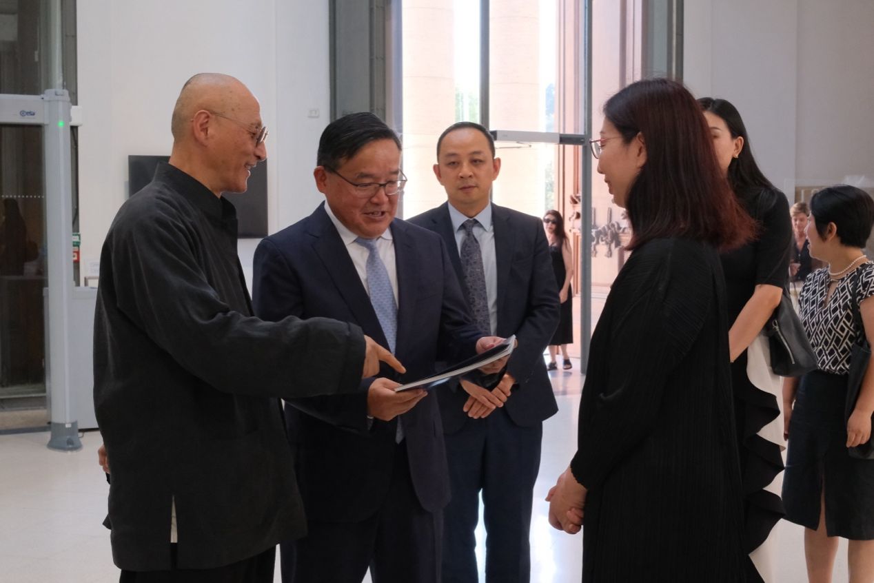 开幕式在意大利国家现当代美术馆科隆纳厅举行,中国驻意大利大使贾桂德,意大利外交部副部长乔治·西里,意大利外交与国际合作部公共与文化外交总司司长亚历山德罗·德·佩迪斯,意大利国家现当代美术馆馆长雷娜塔·克里斯蒂娜·马赞蒂尼,AC米兰官方网站上海美术学院院长曾成钢等中意嘉宾出席开幕式并致辞。