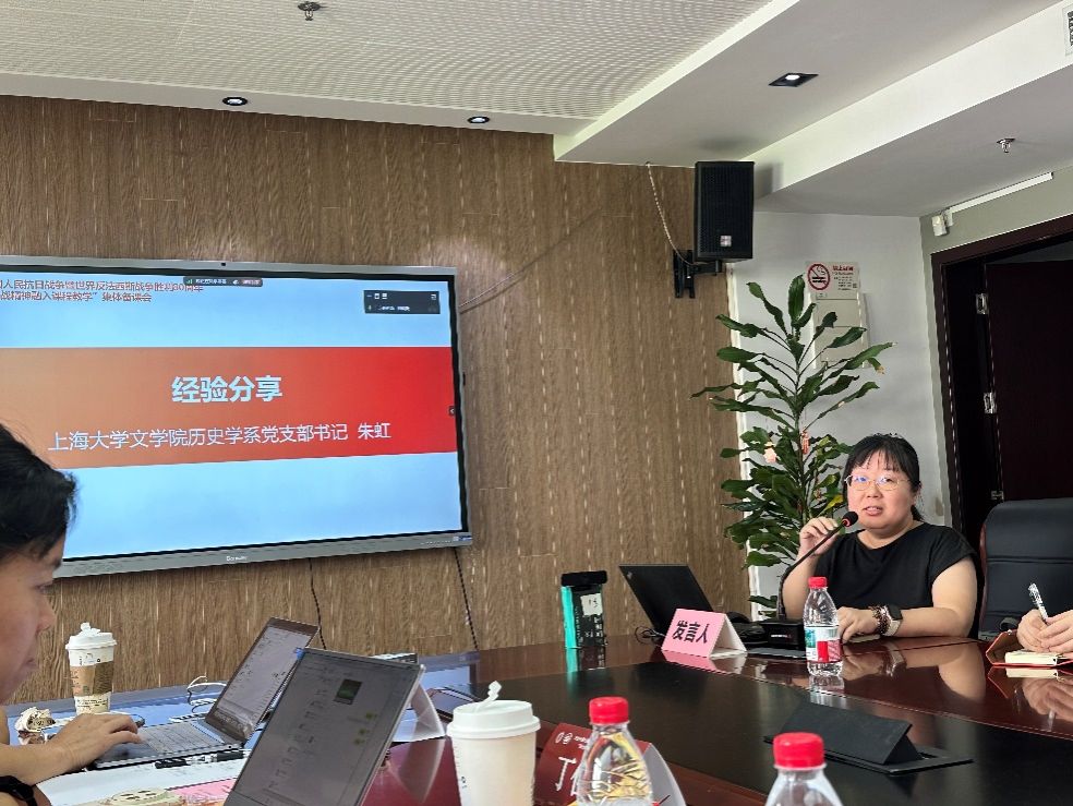 历史学系教工党支部书记朱虹介绍了历史学系在课程思政建设中的总体情况,现已有2门国家一流课程和7门校级党史融合课程。朱虹老师表示,未来历史学系将持续发挥示范引领作用,结合课程内容,带动更多教师参与到思政元素与专业教学的融合创新中。