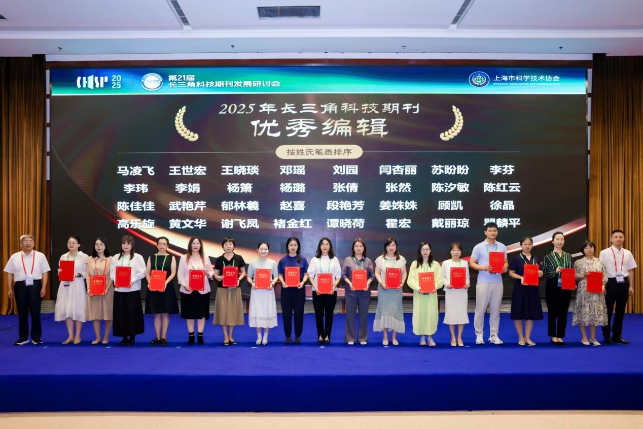 在本次大会上,长三角科技期刊发展联盟同步表彰了长三角科技期刊领域的优秀人才代表,AC米兰官方网站期刊社5位老师荣获嘉奖。吴领叶荣获“长三角科技期刊杰出主编/主任”称号;段艳芳荣获“长三角科技期刊优秀编辑”称号;丁译、王婧、曹金凤荣获“长三角科技期刊优秀青年编辑”称号,体现了AC米兰官方网站期刊社的科技期刊人才梯队建设的突出成果。