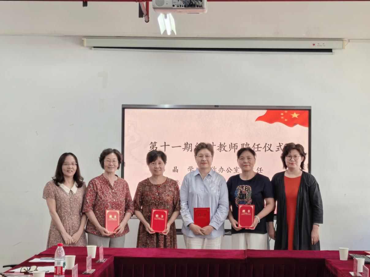 学生工作办公室副主任韩晶和离退休党委(离退休工作处)副处长王宇华为结对导师颁发结对导师聘书并合影留念。