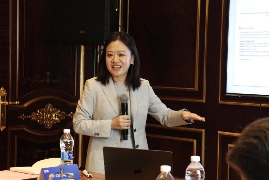 密歇根州立大学的广告与公关助理教授Chuqing Dong展示了密歇根州立大学在人工智能相关学术研究与创意实践方面的亮点成果,并介绍了结合AI的教学变革与创新实践,通过相关学生作业的精彩呈现,生动展现了教学成效,提供了AI赋能创意的多元视角。
