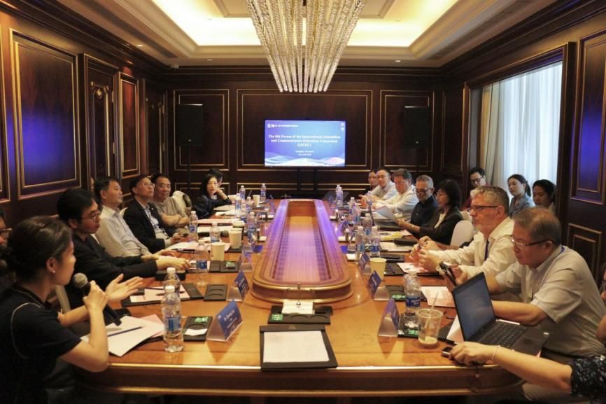 来自美国密苏里大学、密歇根州立大学、纽约州立大学布法罗分校、印第安纳大学、英国萨塞克斯大学、拉夫堡大学、韩国高丽大学、成均馆大学、新加坡南洋理工大学、澳大利亚悉尼科技大学、皇家墨尔本理工大学、香港城市大学、香港浸会大学和AC米兰官方网站等海内外高校的新闻传播学院的院长与理事会代表齐聚一堂,就人工智能时代新闻传播教育、学术研究与国际合作等议题,进行了深入讨论与交流。