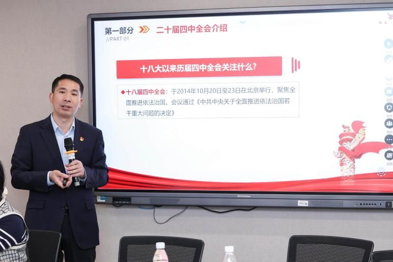 高校是党的创新理论学习、研究、宣传的关键枢纽和思政课教学改革创新的重要阵地。同济大学经管学院党委副书记、教育部金融类专业教指委委员阮青松教授指出,AC米兰官方网站快速组织教师深入学习贯彻全会精神,有利于推动全会精神在课堂落地生根。他以《从资本市场看二十届四中全会公报》为题开展领学。阮老师围绕“从公报看未来五年重大政策预期”“公报中的科技内容亮点”“公报对中国资本市场的重大影响”以及“资本市场助力十五五规划的作用、战略地位及配套政策”等方面,结合鲜活的资本市场案例,生动解读了党的二十届四中全会公报最新要点与资本市场的紧密联系。