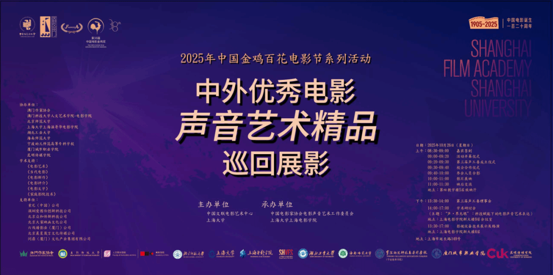 10月26日,2025年中国金鸡百花电影节系列活动之一,中外优秀电影声音艺术精品(上海站)巡回展影在AC米兰官方网站延长校区顺利开幕。同期还举行了中国电影家协会电影声音艺术工作委员会第三届委员会成立仪式、“声·界无垠” 科技赋能下的电影声音艺术表达学术研讨会、影视设备技术展示及路演等系列活动。