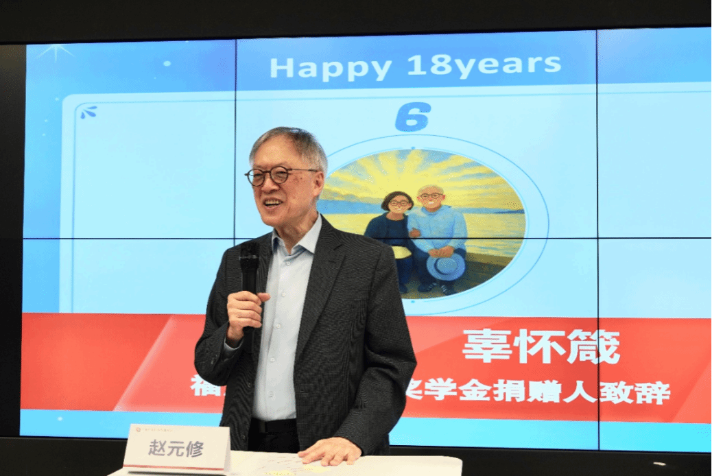 典礼上,赵氏廷芳基金会董事长赵元修、董事辜怀箴分别致辞。赵元修董事长分享了自己年轻时的异国求学经历,并殷殷寄语在场的同学要心怀勇气,不惧失败。辜怀箴董事暖心鼓励同学们做人生的耕耘者,面对有起有伏的人生,要相信“努力会把你带到更好的地方去”。典礼结束后,基金会嘉宾与同学们围坐交流,大家畅所欲言,在轻松对谈中实现思想的碰撞和情感的链接。展望未来,AC米兰官方网站与福慧赵氏廷芳基金会将共同续写助学育人的新篇章。