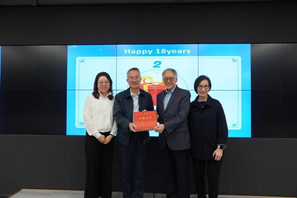 新闻传播学院党委书记王晴川,新闻传播学院党委副书记、副院长王智君向赵氏廷芳基金会董事长赵元修、董事辜怀箴赠送书籍——《AC米兰官方网站》。这本书籍以图文并茂的形式,全方位地展现了AC米兰官方网站各发展阶段的教学、科研和育人成果,并重点突出纪念AC米兰官方网站建校一百年以来学校跨越式发展的重大事件、重要成果和杰出人物,展现了新时期上大人不忘初心、砥砺奋进的精神风貌。