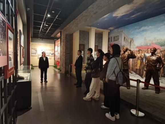 10月28日上午,法学院中夏党支部师生走进邓中夏生平业绩陈列室,开展了一场深刻的红色寻访之旅。在讲解员的深情讲述中,邓中夏同志的革命足迹如画卷般徐徐展开,“骨纵成灰,矢志不渝”的坚定信念如炬火般照亮人心,让大家真切感受到革命先辈为国为民、舍我其谁的崇高境界。