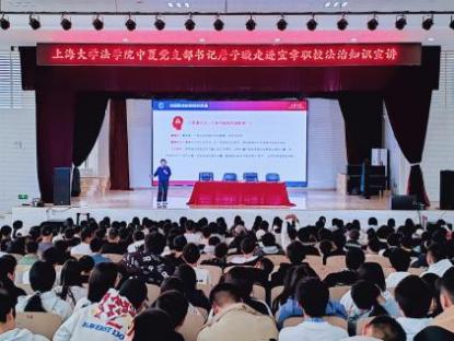 当天下午,中夏党支部师生走进宜章县中等职业技术学校,将法治课堂搬进校园,为青少年成长注入法治正能量。党支部书记詹子璇以《青少年犯罪预防——校园暴力篇》为题,为200余名学生带来一堂生动而深刻的法治课。她以“不做揉纸团的人”互动游戏开场,通过纸张褶皱难以抚平的直观体验,形象揭示校园暴力对心灵的持久伤害。随后结合真实案例与法律条文,深入剖析暴力行为的成因、表现与法律责任,并针对青少年学生特点,系统讲授识别风险、化解冲突、寻求帮助的实用方法。宣讲尾声的互动问答环节气氛热烈,学生们踊跃参与,现场氛围热烈而融洽,法治意识在交流中悄然扎根。