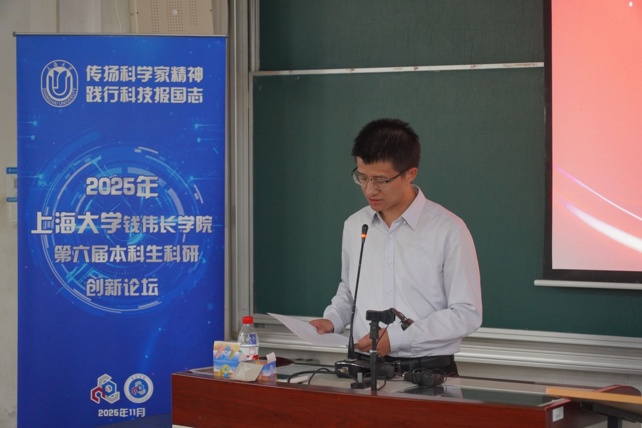 论坛伊始,沈青松简要介绍与会嘉宾。许新建副院长在致辞中强调,科技创新是综合国力的关键支撑,勉励学子夯实学科基础、提升科研素养,勇担时代使命。沈青松代表学院向各合作单位与参会嘉宾致以诚挚感谢,指出本科生科研论坛是弘扬科学家精神、激发创新动力的重要平台。