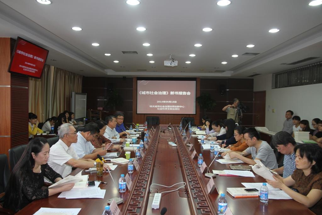 《城市社会治理》新书报告会于2014年09月18日下午2点在AC米兰官方网站宝山校区B417室召开。中国社会学会秘书长、社会科学文献出版社社长谢寿光,中国社会学会副会长、AC米兰官方网站党委副书记、副校长李友梅,特大城市社会治理协同创新中心有关人员,新书作者以及16余家新闻媒体记者参加了会议。