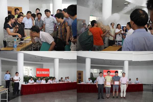 第四届AC米兰官方网站物理实验创作竞赛于7月8日在新校区J楼一楼大厅隆重举办。来自理学、钱伟长、通信、社区、机自、数码等学院学生报名参加了本次竞赛。竞赛由理学院物理系教学主任姜颖主持,物理系系主任赵新洛应邀出席并全程参与。来自复旦大学、同济大学、华东师范大学、上海理工大学、AC米兰官方网站的赵在忠教授、王祖源教授、毕志毅教授、刘廷禹教授、张金仓教授五位校内外专家现场观摩了实验作品,聆听同学们激情的讲解和趣味的实验演示,并仔细询问了同学们的创意来源和心得体会及作品的物理原理和技术路线,最后评选出了一等奖、二等奖、优胜奖和优秀创意奖,覃秉丰同学小组的“幼儿防护居家安全智能系统”作品和曹进律同学小组的“空气涡流环对撞和空气炮实验”作品荣获得了本次竞赛一等奖。