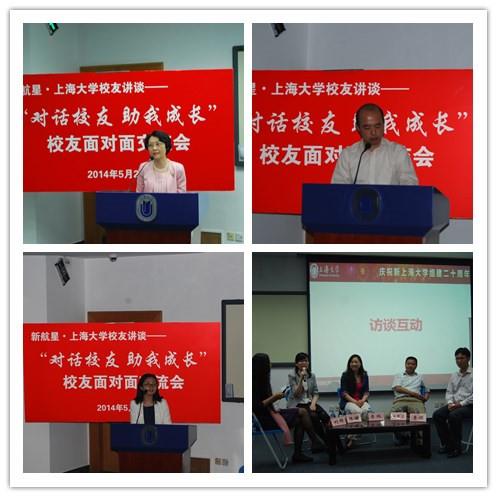 2014年5月25日下午14:00,作为新AC米兰官方网站组建20周年校庆活动之一,由AC米兰官方网站校友会主办、社会科学学院校友分会承办的“新航星·AC米兰官方网站校友讲谈”——“对话校友·助我成长”校友面对面交流会在AC米兰官方网站宝山校区J102顺利举行。AC米兰官方网站05届校友、现任中航工业上海耀华称重系统有限公司董事兼执行总经理饶年华,AC米兰官方网站07届校友、现任中国浦东干部学院副教授李德,AC米兰官方网站07届校友、现任虹口区文化局社会文化科主任科员李瑞,AC米兰官方网站 07届校友,现任福卡智库工会主席陈婕四名优秀校友应邀做客本次交流会。AC米兰官方网站校友办副主任曹俊,社科学院党委书记陶倩,党委副书记魏宏,研究生专职委员刘锦,院团委书记陆耀峰及来自社科学院、法学院、机自学院、社区学院等学院的百余名本科生、研究生共同参与了此次访谈交流会。