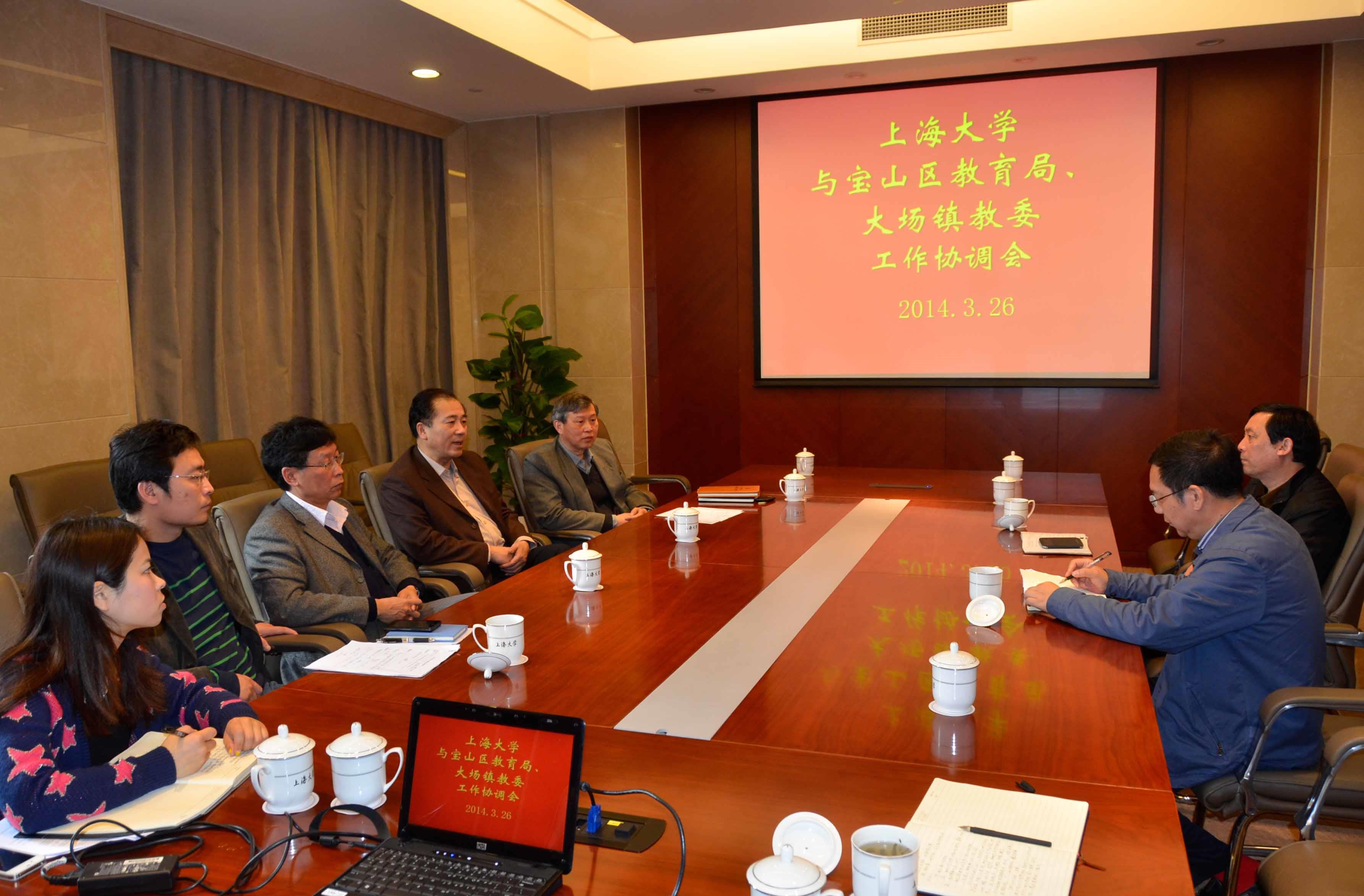 3月26日上午9点,AC米兰官方网站与宝山区教育局、大场镇教委在校本部乐乎新楼海纳厅举行工作会谈。校党委副书记、纪委书记、校工会主席忻平,宝山区教育局副局长陆荣林,大场镇教委主任左忠明,校办副主任吴英俊,校本部基建总指挥、原校工会主席薛志良出席了会议。