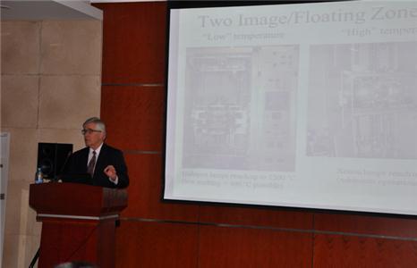 学术报告吸引了材料学院和理学院广大的教师和研究生的参与。Kenneth R. Poeppelmeier教授的报告从材料设计的角度,介绍了小组近年来的在非中心对称氧化物/氟化物低温合成领域的研究进展,并详尽介绍了这种有效的低温合成方法的效率及在发现新化合物中的有效运用。设计和合成新的非中心对称的、具有较大的二阶非线性响应且可有效地实现频率转换的材料一直是从事无机固体化学和材料研究工作的科学家一个长期的、艰难的目标,他从具有偶极矩的集团(过渡金属氟氧集团,非对称分子集团)出发,理性设计新化合物,并采用低温溶剂热方法进行合成,得到了许多具有非中心对称结构的化合物,这样的设计合成理念充分体现了材料“基因”的运用,将构建集团的非中心对称“基因”,通过设计植入潜在新化合物,并使设计合成的新化合物具有非中心对称性。通过理性设计合成方法的运用,将新型非线性光学材料的设计探索提升到一个新的高度。Poeppelmeier教授对于我国以陈创天院士为代表的非线性光学材料的研究人员和取得的丰硕研究成果给予了高度评价。报告结束后,Poeppelmeier教授与师生们进行了热烈的讨论,大家在轻松愉快的氛围中对材料基因理念和材料理性设计制备有了更深的体会,同时学习到了低温合成制备此类非中心对称氧化物/氟化物材料的方法。Poeppelmeier教授报告会后参观了材料学院和理学院相关实验室,与相关老师和学生进行了进一步交流,表示了开展双边合作的意向,为开展更深入学术交流与研究合作打下了基础。