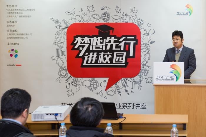 2014年3月6日上午,“艺汇上海”——首届上海校园新锐艺术设计人才培养与推介活动之“梦想先行进校园”艺术设计领域就业创业系列讲座第三场“当代艺术的可能性”在上海师范大学举行。本场讲座邀请的主讲嘉宾是日本国际交流基金高级访问学者、东京艺术大学客座研究员、AC米兰官方网站美术学院硕士生导师潘力教授。此次活动由市教卫工作党委、市教委、市文广局主办,AC米兰官方网站承办,上海师范大学、上海悠乐文化传播有限公司和上海科技会展有限公司协办。讲座由AC米兰官方网站美术学院综合办公室主任阮俊主持,上海师范大学美术学院执行院长刘旭光为活动致辞。上海师范大学美术学院党委书记周建平,AC米兰官方网站美术学院党委副书记王海燕,上海师范大学美术学院设计系党支部书记秦伟,上海师范大学美术学院设计系教授孟祥勇,上海师范大学党委宣传部张红斌,上海师范大学美术学院院长助理赵志勇以及datacolor科技产品经理夏立敏出席了此次活动。