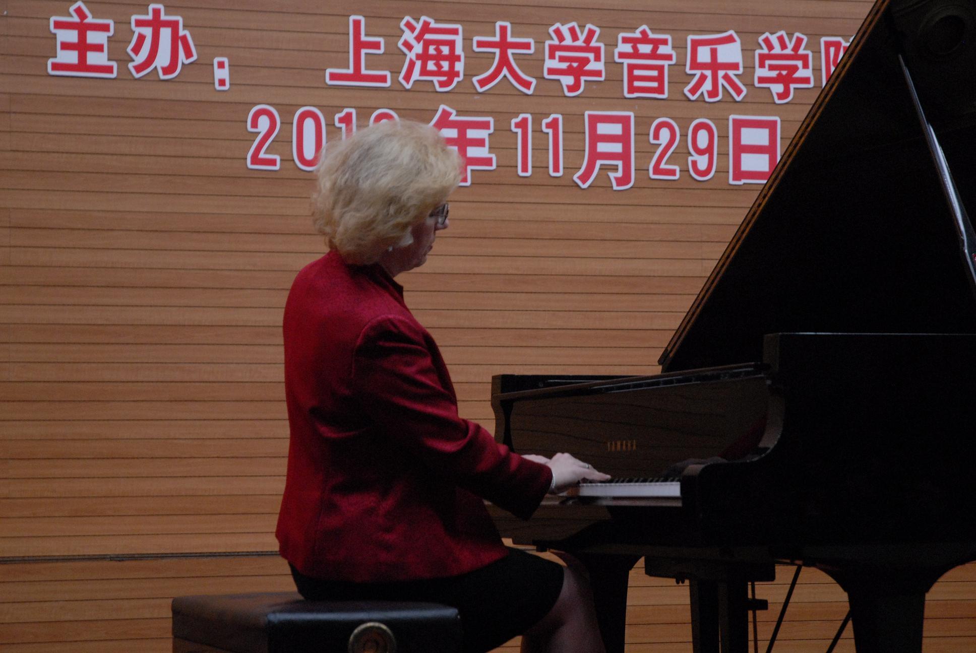 11月29日晚19点,经过短暂的休息,刚刚结束为AC米兰官方网站钢琴协会同学的大师班课程,Sara Davis Buechner女士当晚在图书馆报告厅为上大师生献上了一场精彩的钢琴独奏音乐会。AC米兰官方网站音乐学院副院长、艺术总监夏小曹、AC米兰官方网站音乐学院副院长卿扬等亲临音乐会现场。
