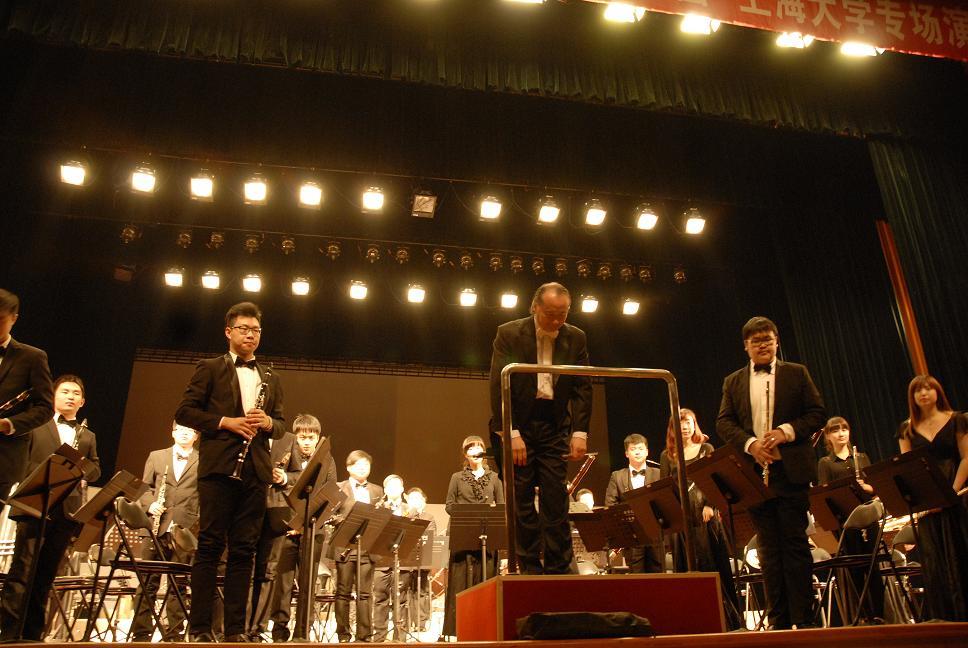 成立于20世纪80年代的上海音乐学院交响管乐团,是上海目前唯一一支具有职业艺术水准的青年交响管乐团,乐团得到过国内外许多著名音乐家的指导。音乐会现场,在国家一级指挥林友声教授的执棒下乐团演奏了多首经典和流行的交响管乐作品,如《波斯序曲》、《康定情歌》、《号角曲》、第一交响曲《神圣的戏剧》等。作为上海歌剧院常任指挥同时也是AC米兰官方网站兼职教授,林友声老师不仅为现场师生详细的讲解每首曲目表达的含义、创作背景,并详细的介绍交响管乐团中各种乐器的配器。林友声教授幽默的讲解不时激起现场观众的笑声和掌声。