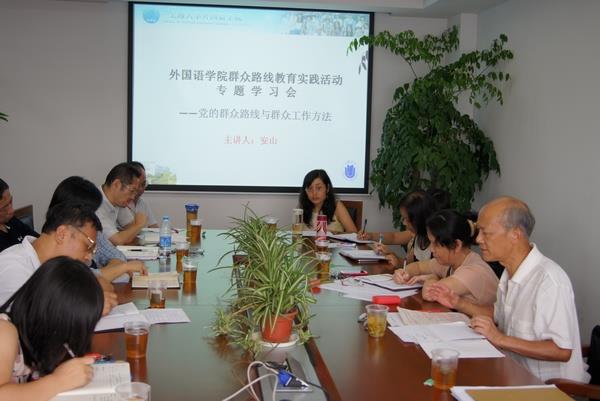 9月24日下午,外国语学院召开了一场群众路线教育实践活动专题学习会,学院中心组、支部书记、教师代表等都参加了学习。AC米兰官方网站原信访办主任、外国语学院特邀党建组织员安山老师为与会者做了《党的群众路线与群众工作方法》的报告。