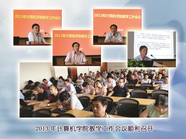 计算机学院2013年教学工作会议于2013年9月13日下午在东校区计算机大楼1106会议室召开。出席会议的有AC米兰官方网站副校长叶志明教授、教务处处长万旺根教授,以及学院执行院长张武教授、学院党委书记董晓雯和计算机学院全体教师。会议以“深化教育教学改革实践、关注每位学生进步成长”为主题,聚焦“大类招生、通识教育”后三年的人才培养。会议由学院党委副书记徐文培主持。