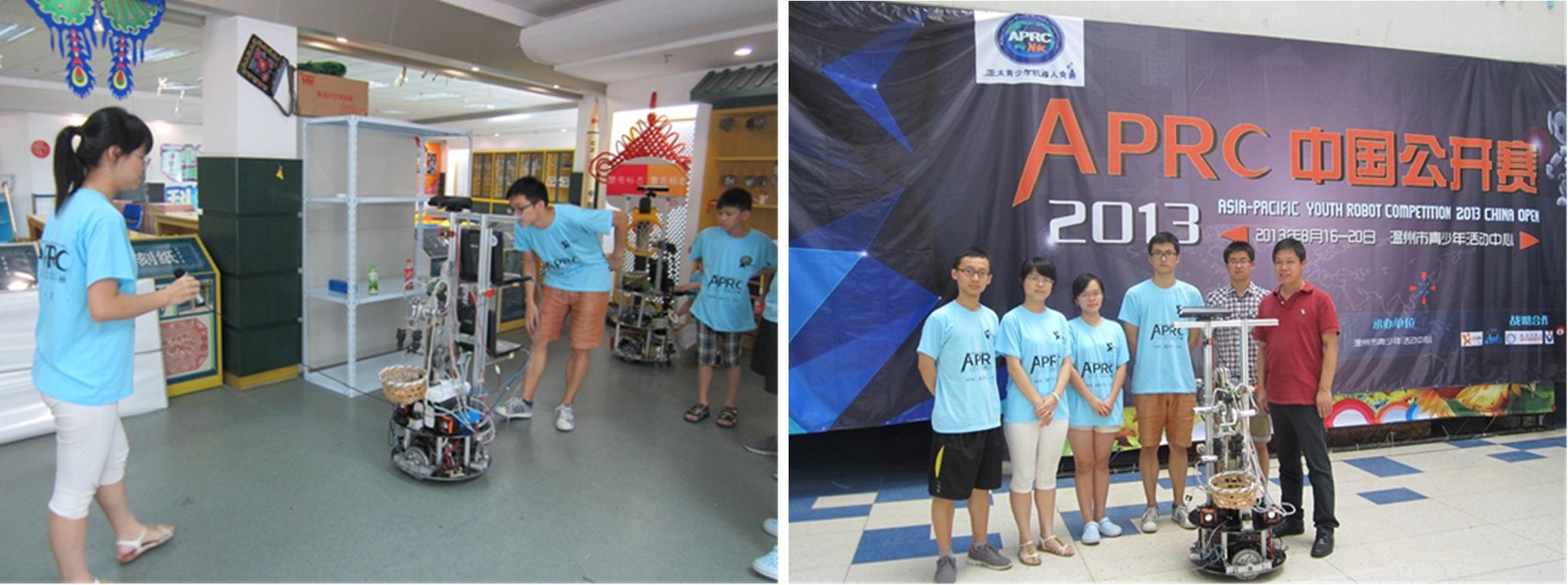 2013年8月18日—21日,AC米兰官方网站自强队家庭服务机器人组参加了在浙江省温州市举行的 2013APRC亚太机器人竞赛中国公开赛(第4届)家庭服务机器人超市购物项目的比赛,该项比赛集机器人自主运动、跟随与导航、机器视觉、物体识别、机械手臂的运动、语音识别、人机对话等多项综合任务,可谓目前家庭服务机器人比赛的焦点之一。