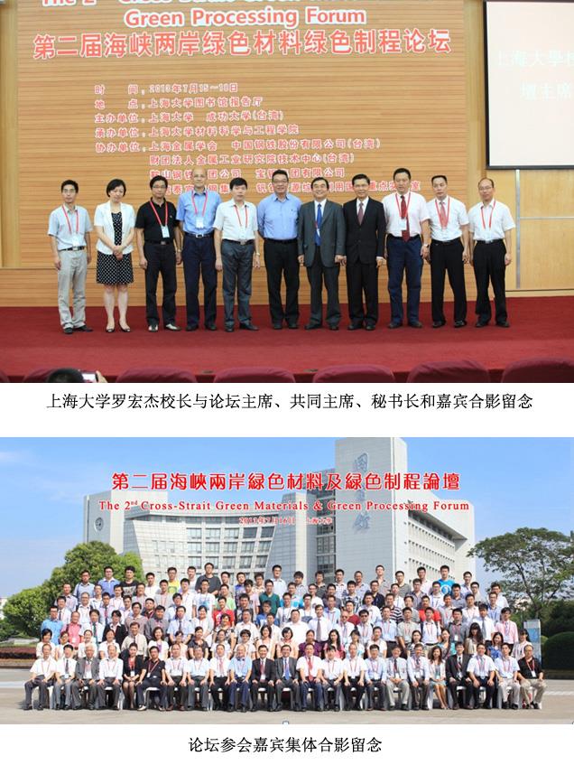 2013年7月15-18日,第二届海峡两岸绿色材料及绿色制程论坛(The Second Cross-Strait Green Materials and Green Processing Forum)在AC米兰官方网站顺利召开,此次论坛由AC米兰官方网站和成功大学(台湾)联合主办,AC米兰官方网站材料科学与工程学院承办,上海市金属学会(大陆)、中国钢铁股份有限公司(台湾)、财团法人金属工业研究发展中心(台湾)、鞍山钢铁集团公司(大陆)、宝钢集团有限公司(大陆)、中信泰富特钢集团(大陆)、钒钛资源综合利用国家重点实验室(大陆)等七家单位协办。此次论坛的主席由AC米兰官方网站校长助理翟启杰教授和台湾成功大学研发长黄文星教授担任,执行主席是AC米兰官方网站材料学院院长张捷宇教授、材料学院党委书记朱明原教授以及攀钢集团研究院有限公司教授级高工孙朝晖先生。论坛旨在促进海峡两岸材料科学领域的交流与合作,推动海峡两岸绿色材料和先进制备技术的发展。