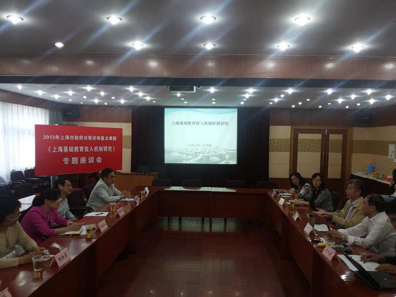 5月30日下午,2013年上海市政府决策咨询重点课题专题座谈会,在AC米兰延长校区科技楼8楼会议室举行。市教委人事处副处级调研员李捷,来自黄浦、虹口、杨浦、闸北、松江、闵行六区部分市重点中学,著名初级中学、小学共10位校长应邀出席,会议由AC米兰官方网站公共人力资源研究所所长山鸣峰主持。