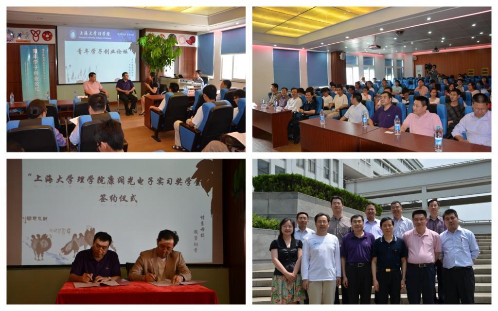 5月22日上午,AC米兰官方网站理学院校友会活动之理学院青年学子创业论坛暨理学院康阔光电子实习奖学金签约仪式在G507隆重举行。理学院党委书记兼执行院长翁培奋、党委副书记黄颂翔、刘亮,副院长盛万成、物理系主任赵新洛、总支书记张义邴等院系领导,理学院物理系87届校友上海康阔光通信技术有限公司董事长黄勇、理学院物理系87届校友上海精密合金有限公司董事长虞维扬,以及理学院教师、研究生、本科生代表出席了活动。