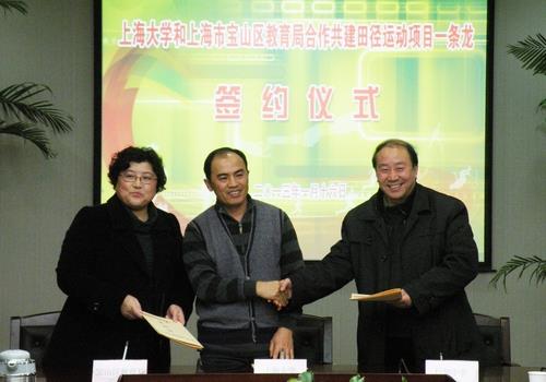 随后,张晓静局长、邵斌院长、张步华校长分别代表宝山教育局、AC米兰官方网站体育学院和行知中学签署了“行知田径运动项目一条龙”协议。
