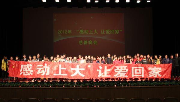 截至2012年,“感动上大 让爱回家” 已经走过了9年,9年来无数的上大师生为感动上大奉献着最温暖的言语,最真切的行动,最真挚的爱心。2012年“感动上大 让爱回家”共募集善款 137405元,共有577名同学受助。为了进一步做好爱心助学工作,倡导慈善义举,营造和谐关爱的校园氛围。2013年1月8日晚,学生社区在伟长楼举行了以 “感动 感悟 感恩”为主题的2012年“感动上大,让爱回家”慈善晚会。校长助理、研究生工作党委书记李伟,学生工作办公室主任林海霞,校团委书记胡大伟,成才服务中心主任汤琳夏、武保处副处长何金伟、学生工作办公室副主任陆瑾、学生社区管理部主任、社区学院党委书记兼常务副院长王军华和各学院的分管学生工作副书记等领导莅临现场,与广大学生以及社区员工一同观看了本场晚会。