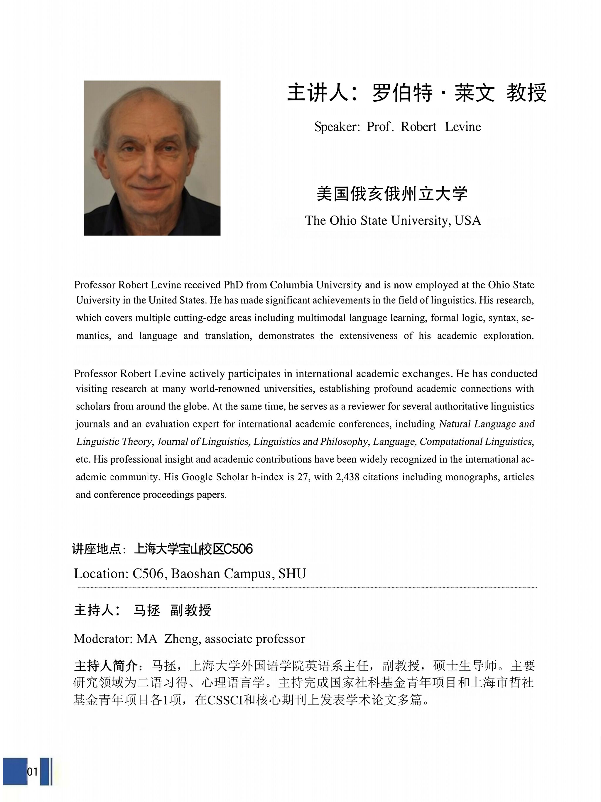 外国专家大讲堂(秋)——美国俄亥俄州立大学Robert Levine教授专题系列讲座