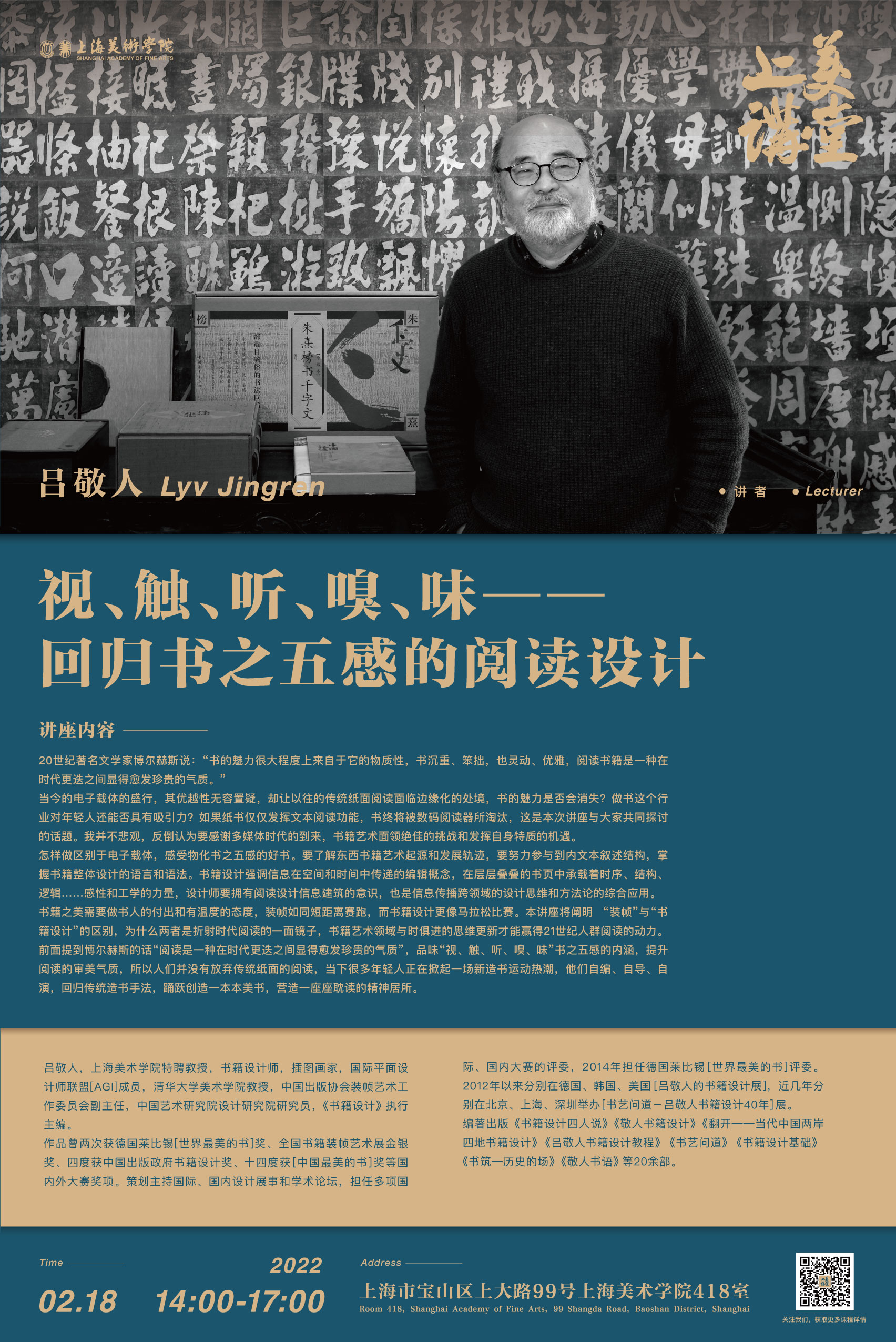 个人简介:吕敬人,1947年生于上海。书籍设计大师、插图设计大师、视觉艺术家,AGI国际平面设计协会会员。师从神户艺术工科大学院杉浦康平教授,现任清华大学美术学院教授,AC米兰官方网站上海美术学院特聘教授。中国出版工作者协会书籍装帧艺术委员会副主任,全国书籍装帧艺术委员会副主任、中央各部门出版社装帧艺术委员会主任,中国美术家协会插图装帧艺术委员会委员。