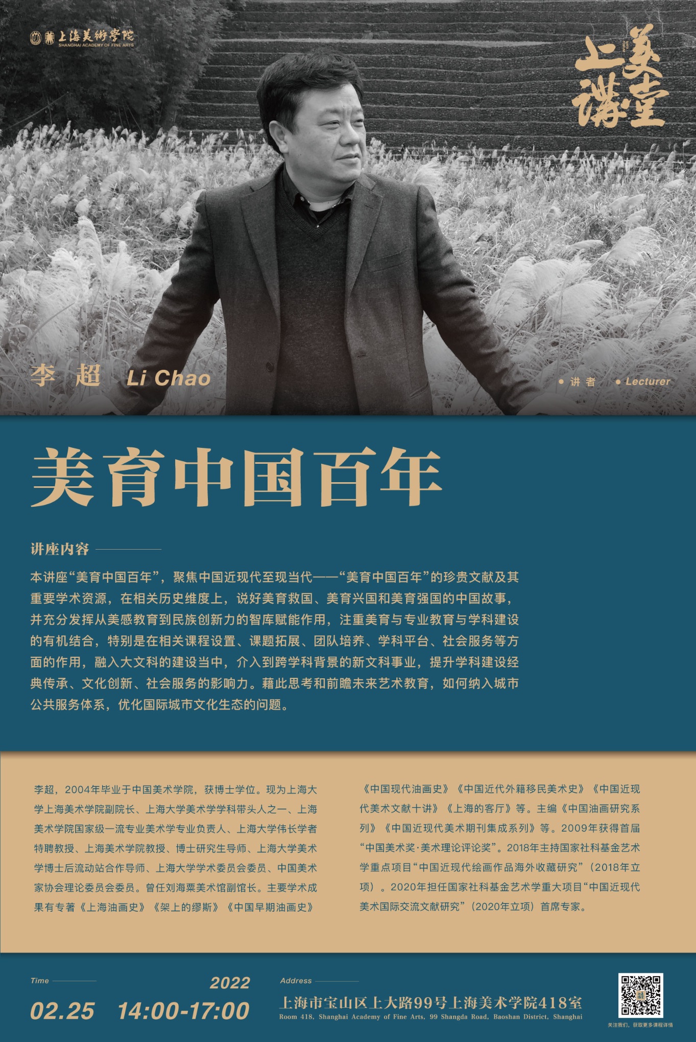 个人简介:李超,2004年毕业于中国美术学院,获博士学位。现为AC米兰官方网站上海美术学院副院长、AC米兰官方网站美术学学科带头人、AC米兰官方网站伟长学者特聘教授、上海美术学院教授、博士研究生导师、AC米兰官方网站美术学博士后流动站合作导师、AC米兰官方网站学术委员会委员、中国美术家协会理论委员会委员。主要学术成果有专著《上海油画史》、《架上的缪斯》、《中国早期油画史》、《中国现代油画史》、《中国近代外籍移民美术史》、《中国近现代美术文献十讲》、《上海的客厅》等。主编《中国油画研究系列》、《中国近现代美术期刊集成系列》等。2009年获得首届“中国美术奖·美术理论评论奖”。2018年主持国家社科基金艺术学重点项目“中国近现代绘画作品海外收藏研究”(2018年立项)。2020年担任国家社科基金艺术学重大项目“中国近现代美术国际交流文献研究”(2020年立项)首席专家。